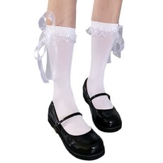여자 소녀 단색 송아지 길이/무릎 높이 양말 일본어 로리타 카와이 달콤한 리본 보우 루플 레이스 레트로 스타킹