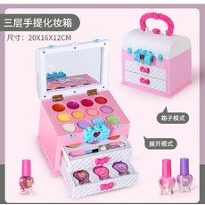 어린이화장품세트 어린이 화장품 세트 가방 메이크업 립스틱 색조 아이 섀도우 티니핑 공주, 3단휴대용화장대, 단일사이즈